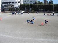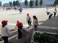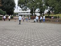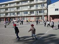 校庭中央では、みんなでドッジボール星やドッジビー星をしているクラスも。5・6年生にっこりもケイドロ星で、すごいスピード急ぎで走っています。2年生ピースは鬼ごっこ星、鬼につかまらないように逃げ足急ぎが早かったです。1年生笑うは、清田先生とだるまさんがころんだ星。「だるまさんがお・ひ・る・ね!。」「え~~~っ衝撃・ガーン。」