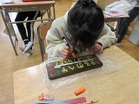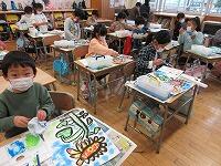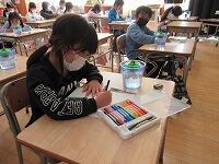 昨日まで「太平少年自然の家星」での宿泊学習遠足に出かけていた4年生笑うのみなさん、今日も元気に登校了解しています。今日は、太平山キラキラから持ち帰ってきた『杉板焼き』に、ポスカ美術・図工で仕上げのデザイン中。
