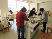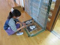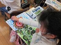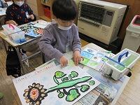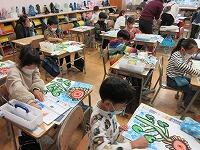 みなさん、集中して了解黙々と取り組んでいます。とてもじょうず花丸ですね~。ぽんぽんくるり笑う。ぽんくるり笑う。出来上がった人は、廊下の乾燥台に、そ~っと置きに行きましょう。