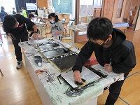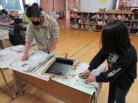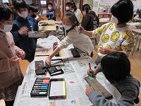さすが5年生星のみなさん、片付けも名人級キラキラです。冷たい水汗・焦るに負けないで了解、静かに黙々と花丸、自分たちが刷りで使ったトレイやローラーを洗って汗・焦るいました。