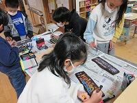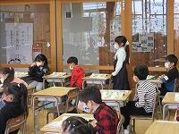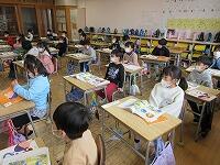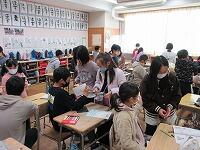 4年生星の各教室では、先週刷った『木版画急ぎ』・絵手紙ボランティアのみなさんと描いた『絵手紙美術・図工』・折り紙をちぎって作った『ちぎり絵ピース』を組み合わせて、すてきなデザイン作品キラキラを完成させていました。「おばあちゃんへ かぜをひかないようにねにっこり」「やさしい家族へ いつもありがとうハート」すてきなメッセージお知らせ入りです。