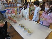 今日の給食は、子どもたちが楽しみにしていた『セレクトキラキラデザート笑う』の日でした。「ミルクパン・牛乳・鶏肉のハーブ焼き・花野菜サラダ・白いんげんのポタージュ・セレクトデザートキラキラ」の献立で、「お米のチョコケーキピース」・「お米のいちごケーキ笑う」・「いちごゼリー了解」の3種類!から自分の好きなにっこりデザートキラキラを選びました。みなさんは、どれを選びましたか?!