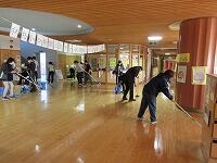 昇降口では下駄箱星の中もきれいキラキラに、広~いオープンスペース星ではみんなでグループ協力して床拭き汗・焦るしています。トイレ星掃除担当は自分専用の手袋ピースをつけて磨いて汗・焦るいます。みんなで力を合わせて了解、学校学校をきれいにキラキラしています。