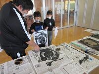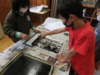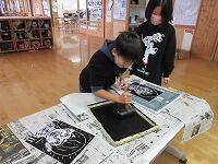 4階のオープンスペース星では、5年生笑うが木版画の刷りピースを行っていました。リコーダー演奏音楽、サッカーでシュート急ぎ、跳び箱で開脚跳び了解、などの力作キラキラが並びました。一人2枚!の作品笑うを刷った後は、、、