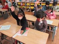 みなさん積極的に了解友達グループの作ったクイズ?!に挑戦し、2学期に習った言い方お知らせを使って友達とのコミュニケーションキラキラを楽しんで笑ういました。