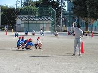 守備チーム星はボールまるをキャッチしたら、チームの全員グループが素早く円に入って座ればOK、一塁に走者が入る急ぎより早ければ、アウト!です。がんばって~お知らせ