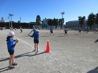 3時間目、校庭では5年生星が体育急ぎで、4カ所のベースに分かれて『ティーボール体育・スポーツ』を行っていました。カラーコーン!の上にペットボトルにっこりを半分にカットした台了解をのせ、その上にのせたボールまるを打ちます。投げられたボールを打つのは難しい汗・焦るですが、セットされたボール笑うはバットに当てやすく体育・スポーツ、みんなにヒットキラキラのチャンスがあります。全員がボールを打つ体験をしたら、2アウトピースチェンジ制のミニゲーム急ぎをしましょう。