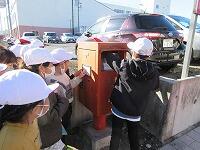 2年生星のみなさんは、生活科キラキラ「つたわる広がるわたしの生活笑う」の学習鉛筆で、年賀状キラキラを書きました。今日は、でき上った年賀状了解を手に、学校北側のポスト!に投函ピースしに行きます。校庭に並んだら、西門から出発急ぎしてポスト!に到着。一人ずつ、ポストに年賀状キラキラをいれましょう笑う。「何時に取りに来てくれるのかな?!。」「ここに書いてあるよ。」