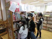 まずは並んで、ごあいさつお知らせ。「よろしくお願いします笑う。」「1冊は『必読図書本』の棚から選んでください。」みんな真剣に花丸選んでいます。
