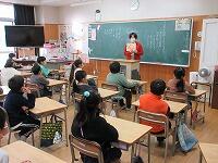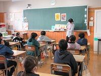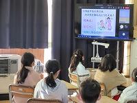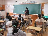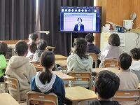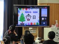 はじめに、4年生星と6年生星の代表児童が「2学期にがんばったこと」の作文鉛筆を発表し、続けて校長先生のお話を聞きました。各教室では、大型テレビ情報処理・パソコンに注目して了解話を聞くことができました花丸