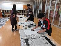さすが5年生星のみなさん、片付けも名人級キラキラです。冷たい水汗・焦るに負けないで了解、静かに黙々と花丸、自分たちが刷りで使ったトレイやローラーを洗って汗・焦るいました。