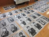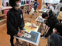 4階のオープンスペース星では、5年生笑うが木版画の刷りピースを行っていました。リコーダー演奏音楽、サッカーでシュート急ぎ、跳び箱で開脚跳び了解、などの力作キラキラが並びました。一人2枚!の作品笑うを刷った後は、、、
