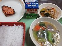 今日は『冬至雪』です。給食給食・食事も『冬至雪献立キラキラ』で「ごはん・牛乳・鮭の香味焼き・かぼちゃ星のそぼろあんかけ・根菜汁」のメニューでした。