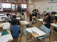 3時間目、4の3星の教室では『うさぎ年キラキラの絵馬!を作ろう』の活動を行っていました。うさぎの形を決めたら、白い画用紙を手でピースちぎっていきます。みなさん集中して了解取り組んでいます。