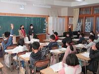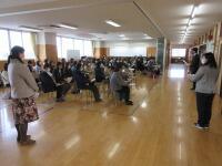 3時間目には5年生星が、4時間目には4年生星のみなさんが日惜ホールに集合し、本校の卒業生キラキラでもある、語り部の間中先生にっこりのお話や栄養教諭キラキラの横山先生の説明お知らせを聴きました。