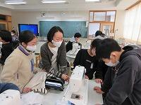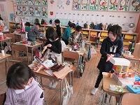5年生星の家庭科家庭科・調理『ミシンにトライ! 手づくりで楽しい生活キラキラ』も、いよいよミシンキラキラを使っての直線縫い上が始まりました。2月1日(水)は5の2のみなさん笑うが、2月2日(木)は5の1のみなさん笑うが、そして今日は5の3のみなさん笑うが、グループの友だちグループと協力して了解、エプロンの制作に取り組んでいました。
