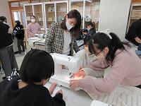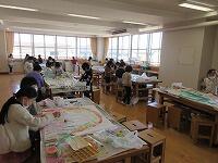 ボランティアキラキラのみなさんが各グループグループに入って、丁寧に教えてピースくださいました。外山先生も大活躍キラキラです。糸が絡まったミシンも直して了解くださいます。