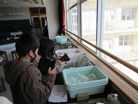 班の友だちグループと協力して実験理科・実験に取り組んでいました。