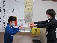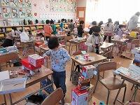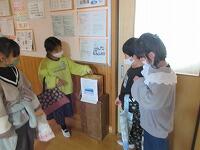 持って来てくれた人にっこりは、クラスごとの名簿に印鉛筆をつけます。1・2年生は、環境美化委員会のお兄さん・お姉さんに名前を言ってお知らせ、印をつけてもらって了解います。来週の校内放送で、お知らせします。