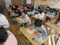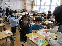 2の1には5の1「スマホをひろったニワトリは!」、2の2には5の2「ぜったい食べないバツからね」の本を読み聞かせキラキラしました。2の3は学級閉鎖なので解除OKになったら5の3の図書委員グループが担当します。どの教室でも、お兄さん・お姉さんの読み聞かせキラキラに夢中になって聴いていました花丸。最後は、しっかりとごあいさつお知らせ。「ありがとうございました笑う。」