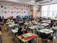 今日は『節分キラキラ』、給食も『節分笑うメニュー給食・食事』で「ごはん・牛乳・いわし星のかば焼き・礒香あえ・けんちん汁・福豆星」の献立でした。