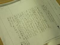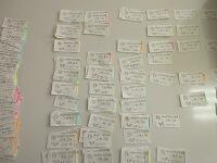 1枚書けたら、机のわきに置いた新聞紙フォルダー星にはさんでおき、自信作ピース1枚を提出急ぎします。