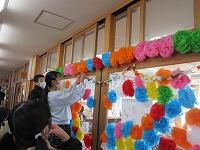 卒業式に向けて① 職員作業:紅白幕