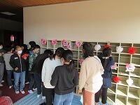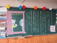届いた祝詞キラキラや各学年のお祝いメッセージ鉛筆を掲示して、、、