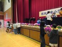 学年の課程の『修了証キラキラ』は、各学級の代表児童星に、学年ごとに壇上で渡しました。担任の先生会議・研修の号令お知らせで、学級全員グループが元気よく返事をして了解起立します。1年生、、、