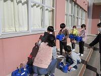そんな中、1年生星のみなさんは、ベランダで育てていた一人一鉢了解チューリップ笑うの鉢植えを、西校舎前に運んで急ぎいました。