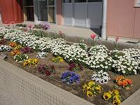 暖かなにっこり日の光晴れを浴びて、桜も花壇の花々キラキラも、きれいに花を咲かせています了解