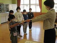 、、、5年生の各学級代表にっこりに、修了証キラキラを渡しました。