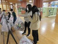 見る見るうちに、クラスごとの袋が満杯驚く・ビックリになっていきます。アルミ缶を袋に入れたら、名簿にチェック鉛筆をします。1・2年生星の名簿のチェック鉛筆は、環境委員会児童グループがしてくれます。