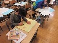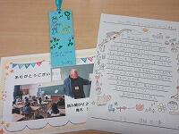 今日で今年度最後!の読み聞かせとなるボランティアさんキラキラには、お礼のプレゼントイベントをお渡ししました。図書委員会児童手作りの「お手紙鉛筆・しおり笑う・活動の写真視聴覚入りカード」です。