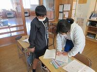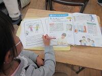 今日のめあて星は「まわりの人とあかるい気もちハートでかかわることをかんがえよう。」です。「みんなだったら、まやちゃんにどんなアドバイスお知らせをしてあげたいですか?。」道徳のノートに鉛筆書いてみよう。柏崎先生の質問?!に、次々と意見が出ました。「勇気ピースを出して言ってみて。」「一緒に練習してみよう笑う。」「自分からあいさつできると気持ちよく了解なるよ。」、、、