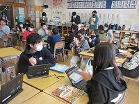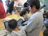 個人の考えひらめきがまとまったらピース、グループになってグループ友だちと意見を伝え合いお知らせました。気になったことを質問?したり、「それは、〇〇っていうこと?!」と確認したりする姿がありました。活発な意見交換が見られたので了解、さらに多くの人と意見交流キラキラをしてみましょう。タブレットキラキラを手に、3人3ツ星の人との意見交流を目標に、、、