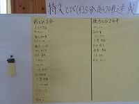 後半は、「学級対抗グループ長縄跳び急ぎ」です。3分間!に跳べる回数を競います。各クラス2チームピースが順番に対戦、先生方が回数を記録鉛筆しました。結果は、、、後ほど発表キラキラします。