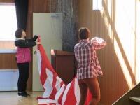 3月15日には、卒業式キラキラを予定しています。体育館の会場づくり急ぎも、少しずつ準備 が始まっています。放課後は職員作業急ぎで、壁面に紅白幕キラキラをはりました。金曜日までは体育館体育の使用が了解できます。体育館が華やいだ雰囲気にっこりになりました。