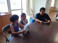 内容もすごく工夫されていました。動画を使って災害を紹介したり、低学年でも答えやすいように2択や3択のクイズにしたりしたので、最後まで意欲的に参加できました。イベントを終えた3人の感想は、「緊張したけど、みんな楽しそうにしてくれてよかった。」でした。