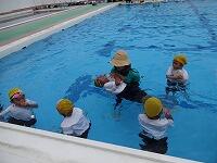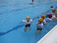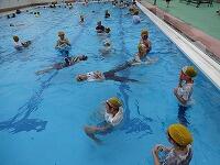 水着の上に体育着を着てプールに入りました。体育着を身に付けているだけでも、いつもより動きずらいことがわかったようです。