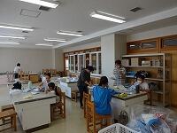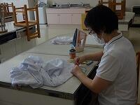 夏休み中を利用して、ボランティアさんに給食時に着る白衣を修繕していただきました。丁寧に扱っていても1年たつと修繕が必要になります。担任の先生や栄養教諭の先生が一つ一つ確認し、直してほしいものを選んでお願いしています。