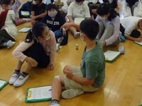 たばこについては、ニコチンやタール、一酸化炭素の影響を実験や画像で説明していただきました。子どもたちは、たばこを入れたお湯がどんどん茶色に変わる様子や黒くなった肺の写真を見て驚いていました。