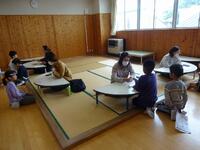 朗読が終わると、班ごとに朗読の内容を思い出して、どのお話しか話し合いました。答えを書いた指令書をトトロのポストに入れて結果を待ちます。