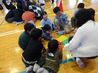 まずは、なわを使った体ほぐしを通して、なわとびが上手になるためのいろいろな体の動き方を練習しました。