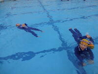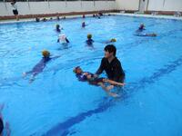 一人また一人と気付いた子から「あおむけになるといいよ。」「力を入れない方がいいよ。」とアドバイスがされました。先生に支えてもらって安心してあおむけになる経験ができた子どももいました。