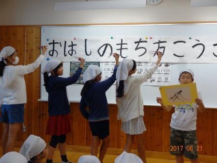 おはしの持ち方も、委員会のみんなが教えてくれます。