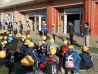 のみなさんをお迎えに来た児童とともに。教室に向かっていただきました。