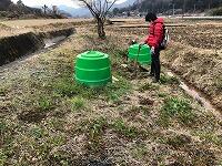 田んぼわきには、畑や道具置きなどに使われている空き地があります。