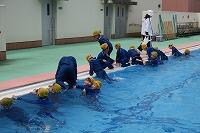 動きにくいなあ。」水中では、陸上では感じなかった動きにくさ・泳ぎにくさを感じていました。プールからあがるのも濡れた体育着が重たくて一苦労
