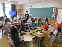 理科室理科・実験では5年生が、音楽室音楽では4年生が授業中、そ~っと中の様子をのぞいて虫眼鏡いました。「すごいなあ。」
